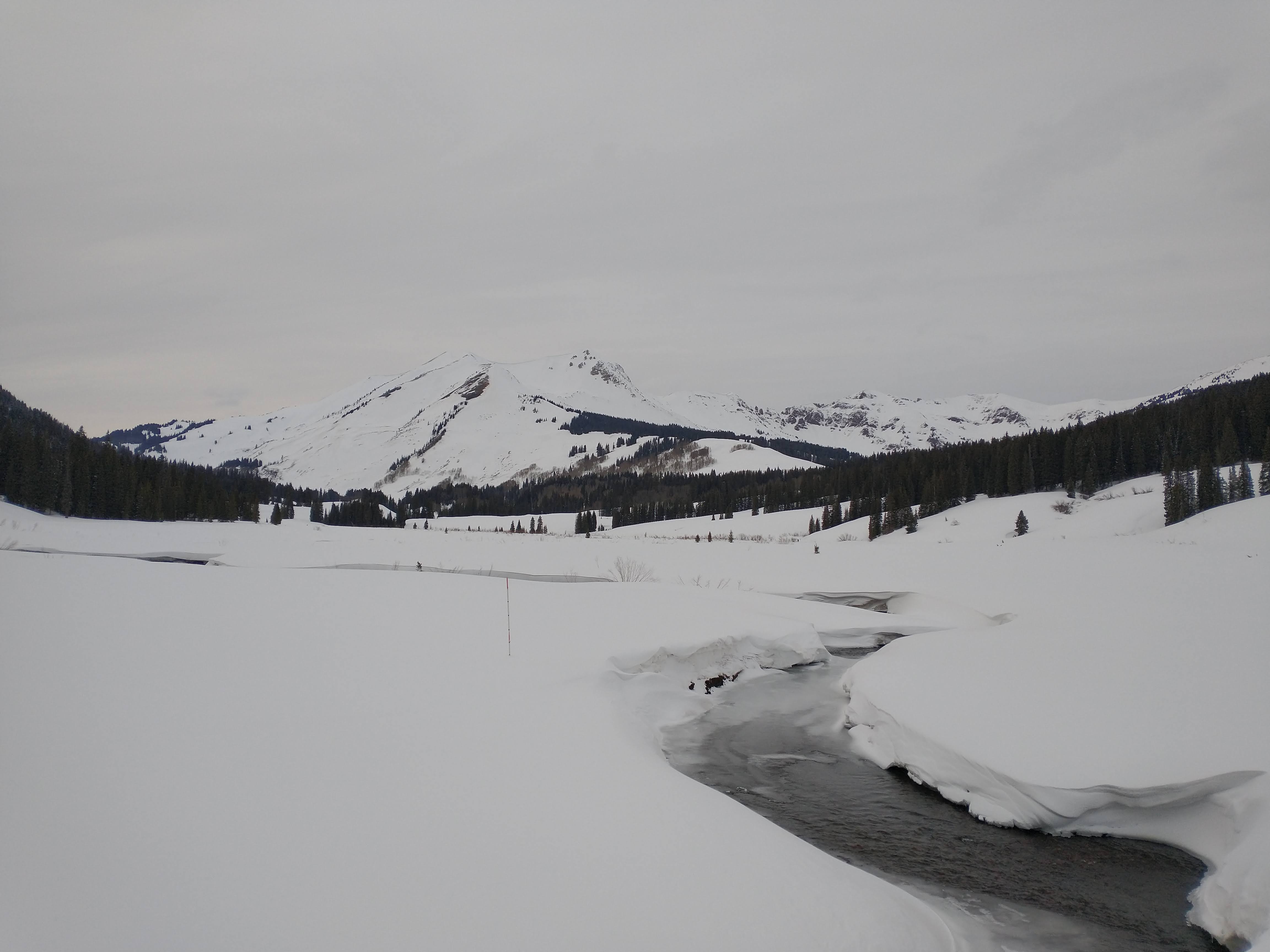 In the summer, Gothic will be bustling with researchers from undergrads to grad student to professors. Gothic is a collection of old and cool looking mountain cabins from a bygone era. There are also a couple high tech lab buildings that they have designed in a way to match the ghost town/mining town architecture. 2 little creeks converge in the town and if you were to continue on the road up and out of Gothic you would go over the 4WD schofield pass to Marble (and the Aspen area). Although it's at least a 5 hour drive, we are only about 18 miles as the crows flies to where we lived in Snowmass a couple of years ago.